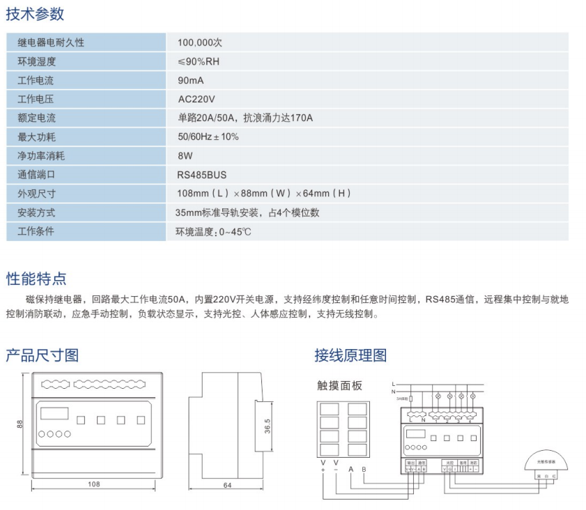 QC-4路20A/50A經(jīng)緯度智能照明模塊